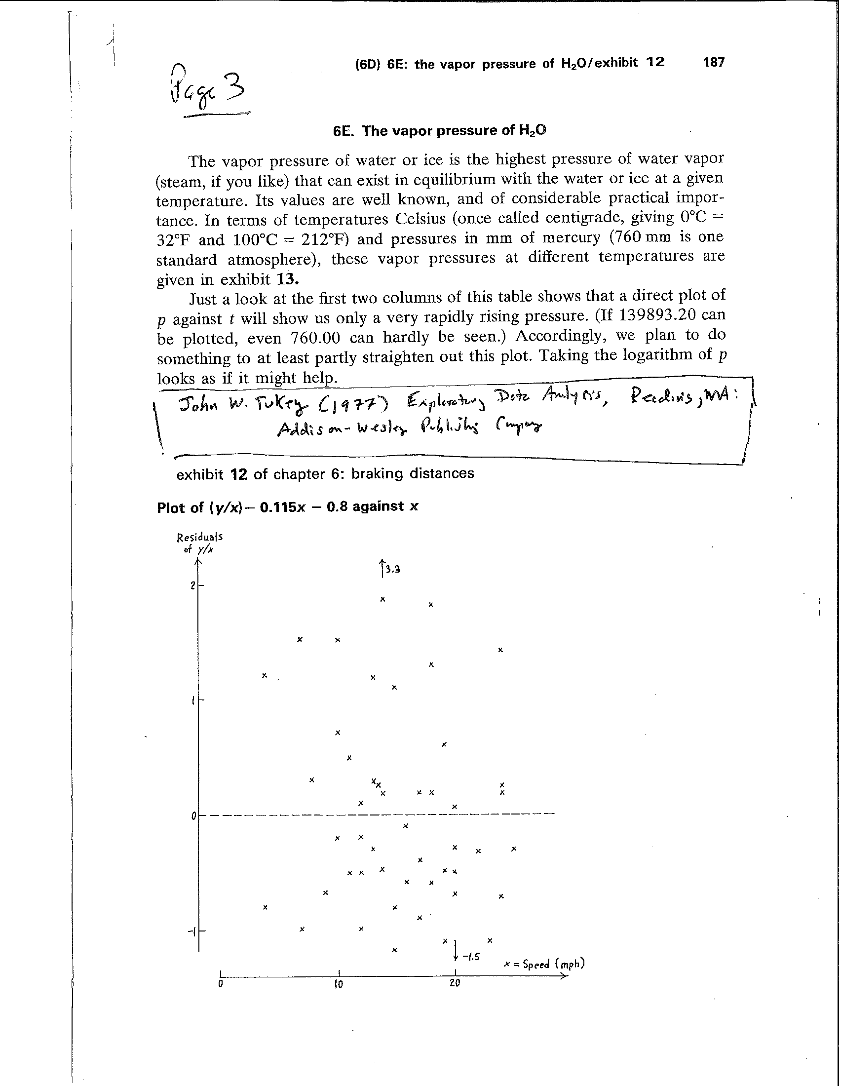 Example 2 (Page 3): Same idea extended to 2 dimensions. The "up arrow" and "down arrow" indicate points far away from the others, but still allows clarity of the scatter plot. The arrows are placed at the x-value for each point. This plot hand drawn by JWT (?) in his EDA Book.