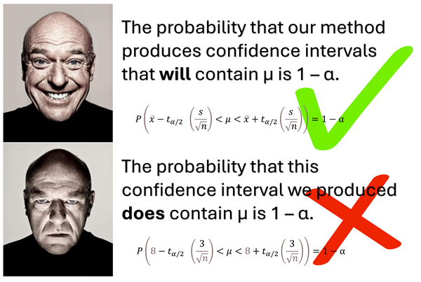 After the experiment, our confidence interval t either contains the parameter or not. We do not know which but the truth now k=knows with certainty.