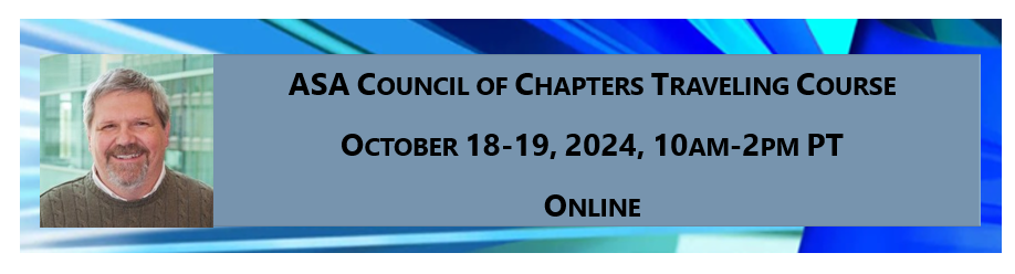 The Southern California Chapter of the ASA (SCASA) is pleased to announce the ASA Council of Chapters Traveling Course. It will be a full-day course split into two half-day courses.