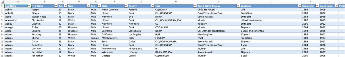 To access the data, go to this website: https://www.law.umich.edu/special/exoneration/Pages/Spread-Sheet-Request-Form.aspx