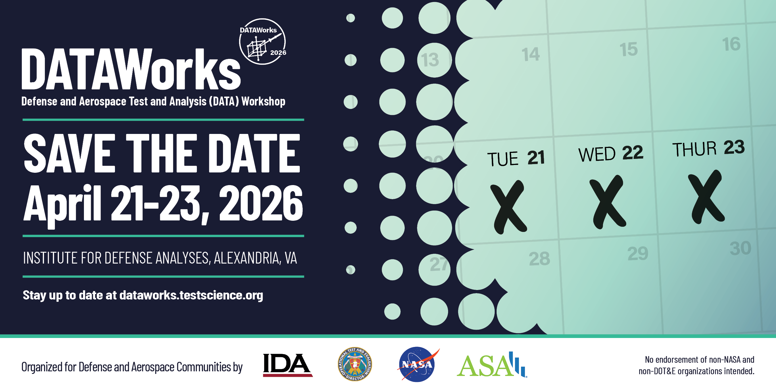 The Defense and Aerospace Test and Analysis (DATA) Workshop is the result of a multi-organization collaboration with the Director of Operational Test & Evaluation (DOT&E) within the Office of the Secretary of Defense, National Aeronautics and Space Administration (NASA), the Institute for Defense Analyses (IDA), and the Section on Statistics in Defense and National Security (SDNS) of the American Statistical Association (ASA). The workshop is dedicated to strengthening the defense and aerospace test and evaluation community through the application of rigorous, science- and technology-based approaches to test design and data analysis. The workshop showcases a combination of applied problems, unique methodological approaches, and tutorials.